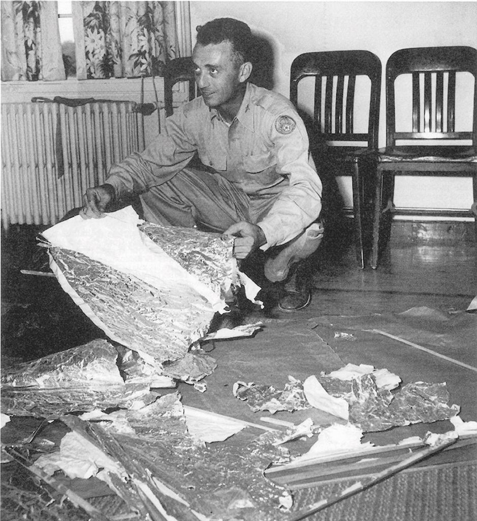 But just as quickly as excitement of the find gathered pace, the Army took swift action in debunking the story. The very next day, shortly after government scientists began to arrive at the scene, it was claimed that the debris was actually from a crashed weather balloon, and Marcel was asked to be pictured at a press conference with the debris allegedly found. And that was that, case closed — or so everyone thought.