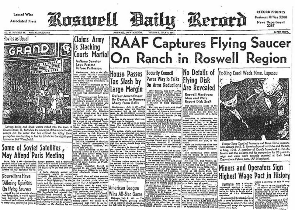 What happened next would cement the idea that the debris was the remnants of an alien spacecraft. According to David Clarke’s book “The UFO Files: The Inside Story of Real-Life Sightings”, published by Bloomsbury in 2012, the RAAF’s public information officer Walter Haut issued a press release on July 8: “The many rumors regarding the flying disc became a reality yesterday when the intelligence office of the 509th Bomb Group of the Eighth Air Force, Roswell Army Air Field, was fortunate enough to gain possession of a disk through the cooperation of one of the local ranchers and the sheriff’s office of Chaves County”.