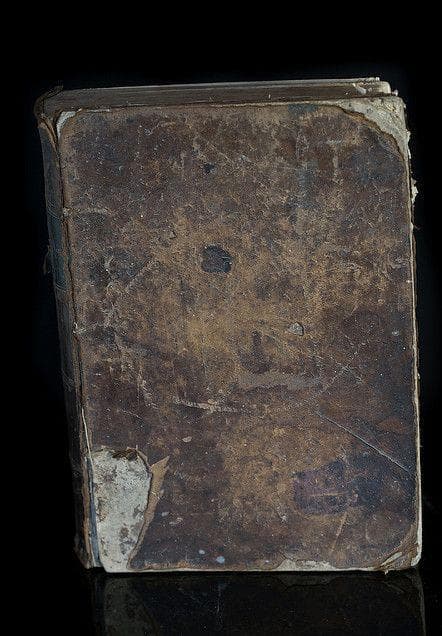 A Prayer Book On Display Has Three Fingermarks Burned Into It