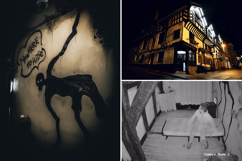 The eerie hotel got an even spookier makeover by designer and paranormal investigator Brett Jones, with Slender Man-like figures on one wall, satanic crosses, a ghostly nursery, a mirror room and a pentagram-clad floor.