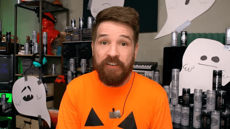Deadstream opens with a Halloween introduction to YouTube influencer Shawn (Joseph Winter), in attire that feels at home with Spirit Halloween store’s Pumpkin Suit, but in a lower brow way. The jack-o-lantern attire makes an excellent choice for the underachiever or the jokester type. Easy to pull off? Check? Holiday appropriate? Check. Silly? Check, check, check. Add paper ghosts or a ghoulish ghost hand with gnarled fingernails for effect. If you’d rather be the avenging ghost, Melanie Stone’s Chrissy makes for an even stronger option.