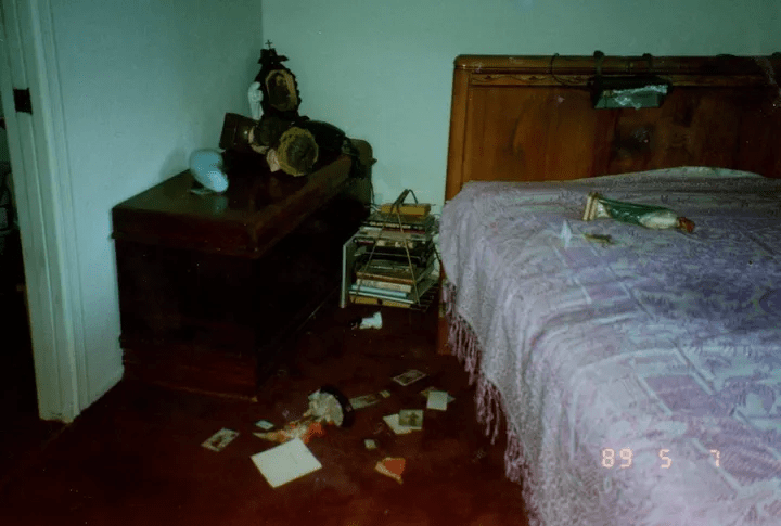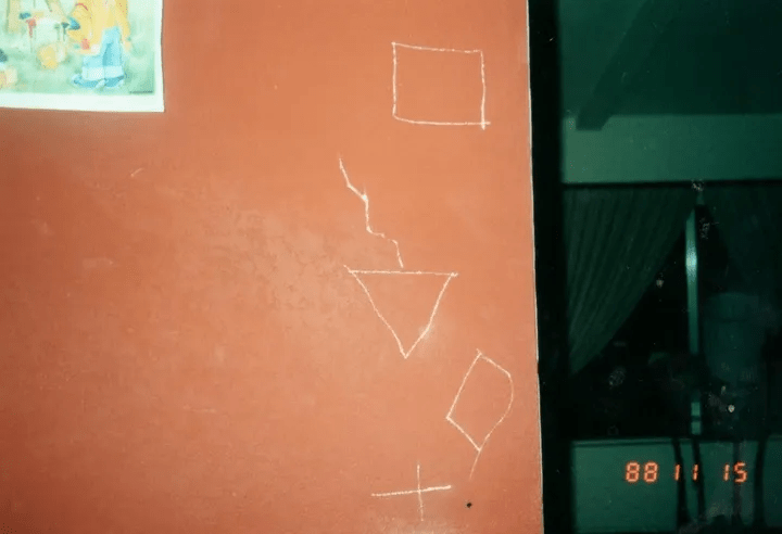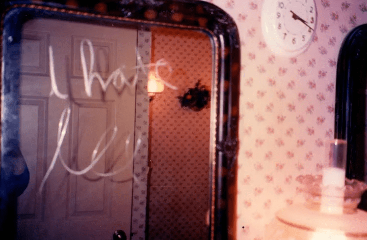 Every photograph was strange ― some horrifying: a knife thrust into a picture of my grandmother on the wall; a group of bizarre shapes scratched into a door; bright words written on a mirror that read, “Lee die.”