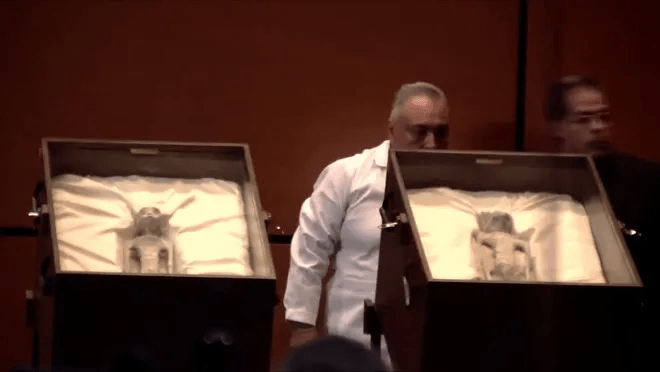 X-rays of the specimens were also presented during the hearing, which experts testifying under oath claimed showed that one specimen had what appeared to be eggs or ovaries, while the other had implants made of rare metals, such as Osmium.
