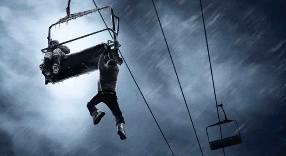 In Frozen a group of friends get stuck on a ski lift high above the ground in the middle of a snowstorm and try to figure out how to get down.