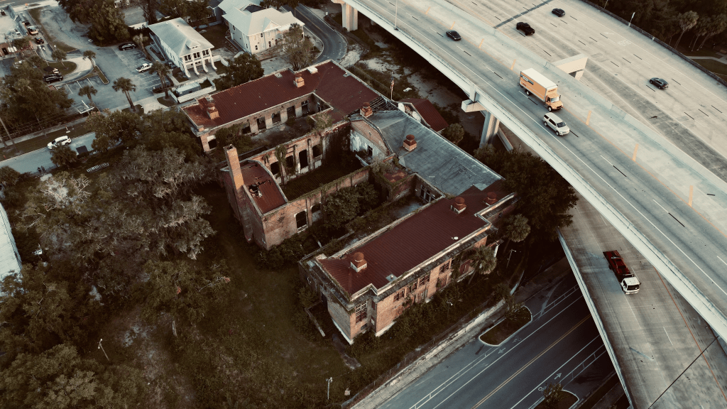 The school’s end was hastened by the construction of what became Interstate 95. Starting in 1954, Jacksonville began work on the Fuller Warren Bridge, part of the burgeoning expressway network that marked a new epoch of car-centered development. In a notable example of Jacksonville’s Godzilla strategy of urban development, expressway routes were partly chosen to facilitate the demolition of supposed blighted areas and to serve as physical barriers between Black and white neighborhoods; in Annie Lytle Elementary’s case, the bridge separated white Riverside from largely Black Brooklyn. The expressway also took out part of Riverside Park and cut the school off from the neighborhood it served, and just months after the Fuller Warren fully opened in March 1960, Annie Lytle Elementary’s classroom bells rang for the final time.
